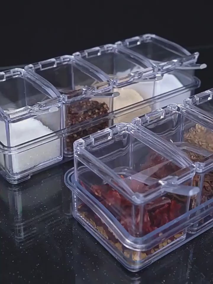 🧂 4-in-1 Spice Set: Comes with 4 individual seasoning boxes + spoons for convenience.